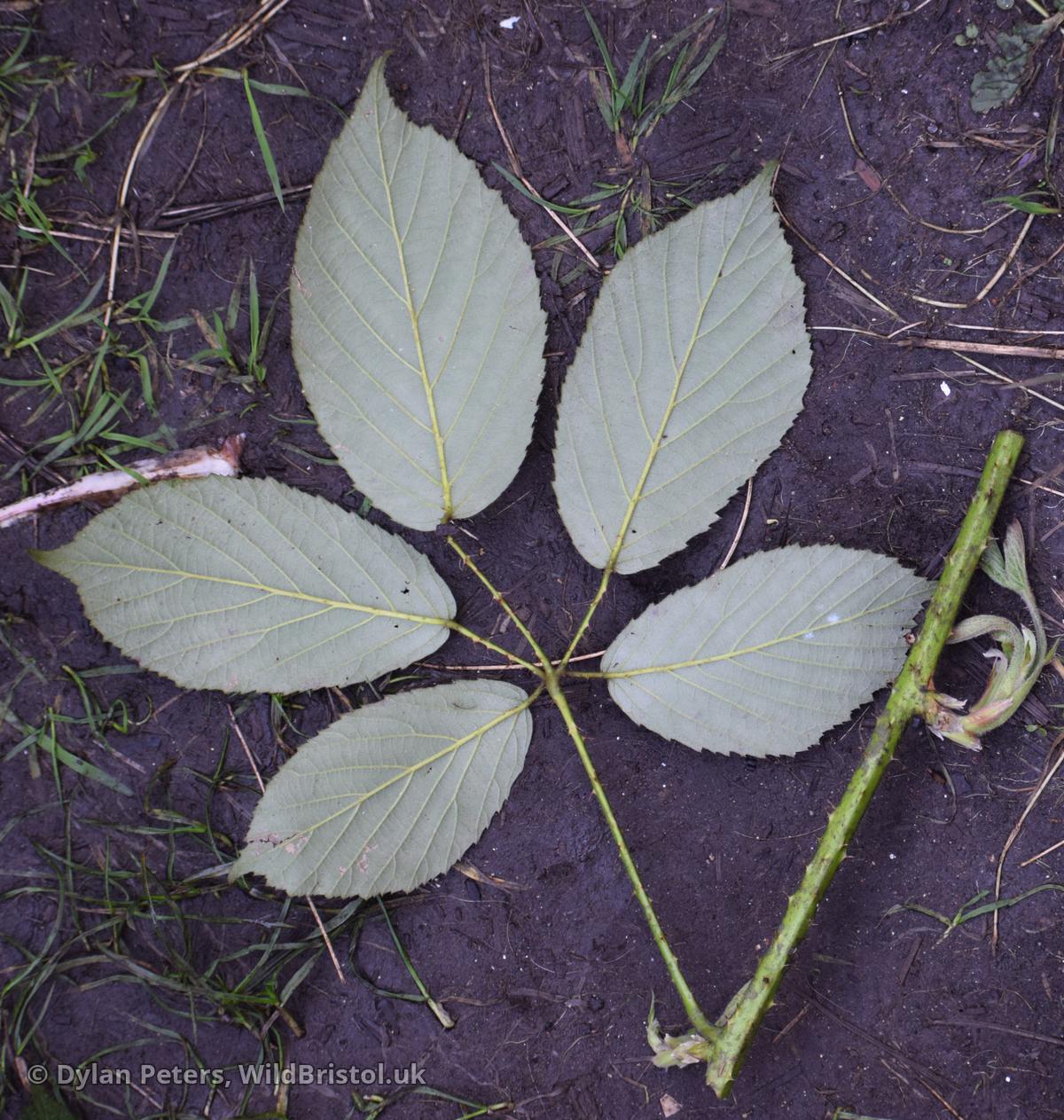Very distinctive leaves with very long basal and lateral petiolules and narrow leaflets. Might actually be ser. Micantes or Radulae. Similar is some ways to R. glareosus.