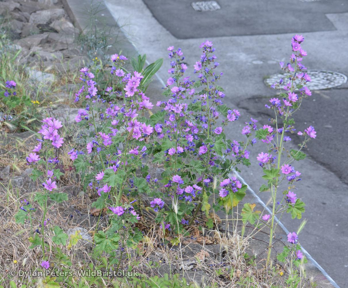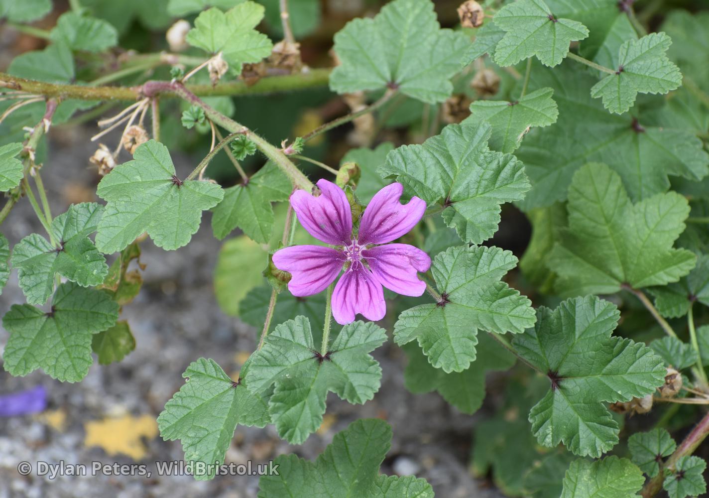 Common and widespread. Habitat: waste ground, roadside verges, meadows, I've even seen it growing in the cracks of pavements and the crack between the curb and the path on a road. Biennial. A variety - var. mauritiana 'Mystic Merlin' with dark purple flowers is grown and sometimes escapes. Glabrescens, folia teneriora obtusius lobata, flores viridius purpurei minus profunde emarginati [Glabrous, with tenderer leaves, more obtusely lobed, flowers greenish purple, less deeply emarginate] Flora Orientalis (1867, p. 819).