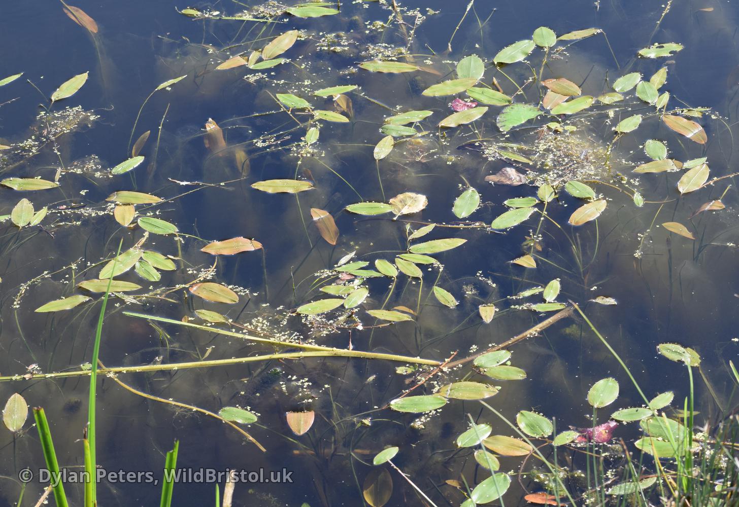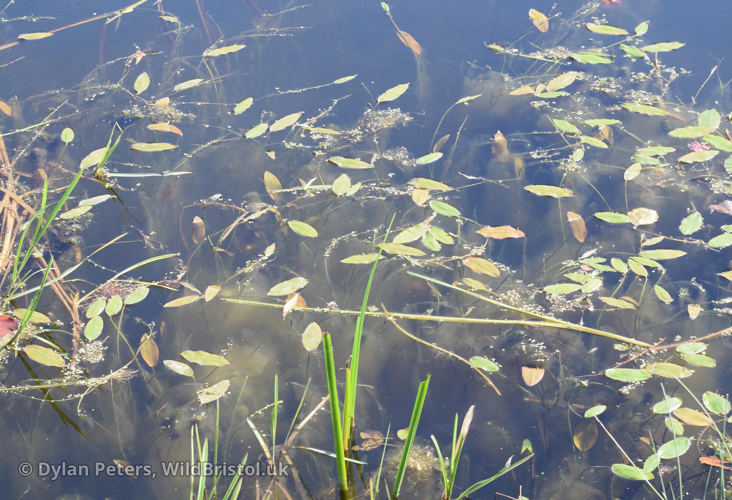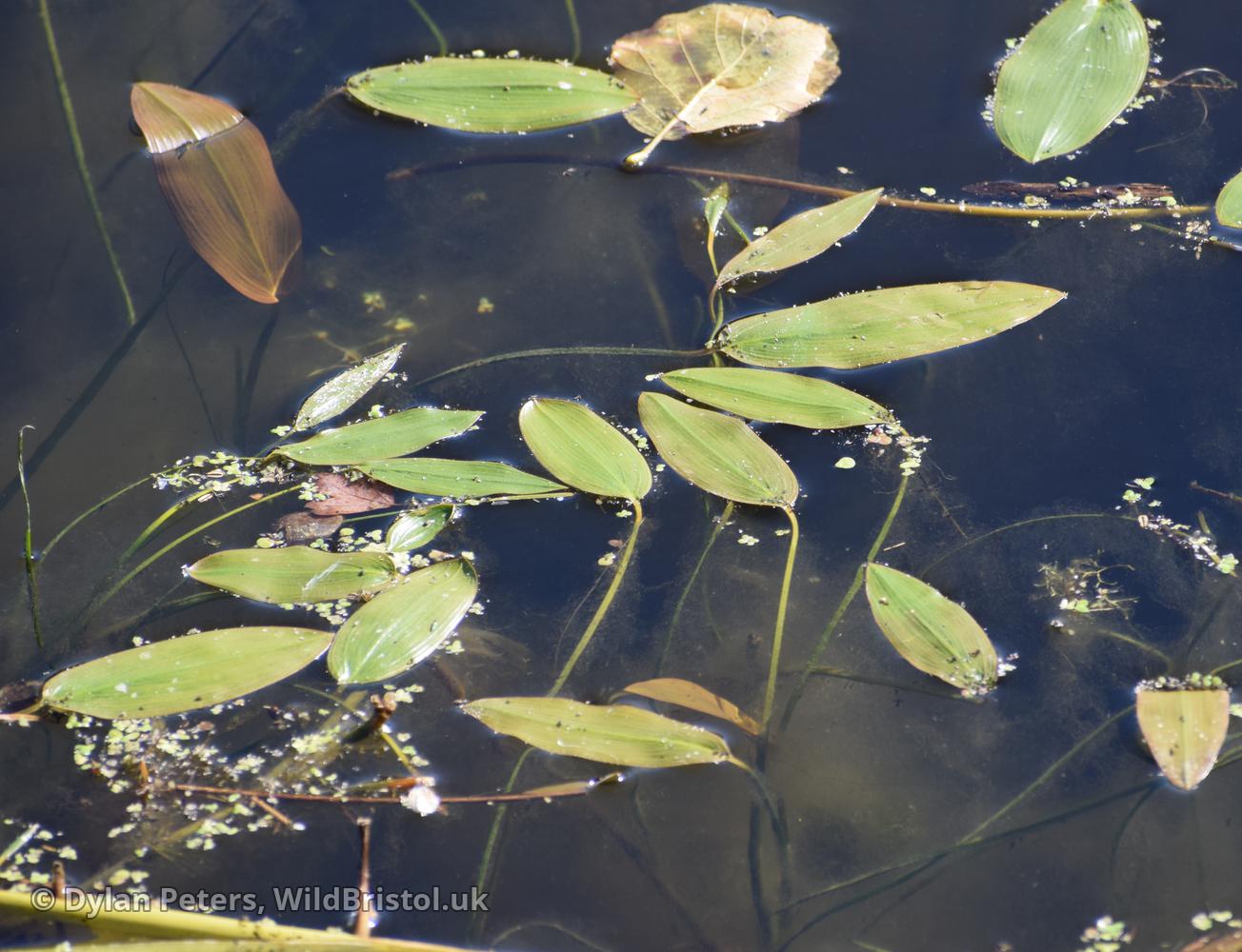 Floating leaves opaque, elliptic to ovate-elliptic, ≤10(14) x 4.5(8)cm, very rarely 0; submerged leaves opaque, linear ≤3.5mm wide, often very long, rounded at apex, sessile; fruit 3.8-5mm; 2n= about 52 (42, 52). Native; lakes, ponds, rivers, ditches, usually over rich soils; frequent throughout British Isles.