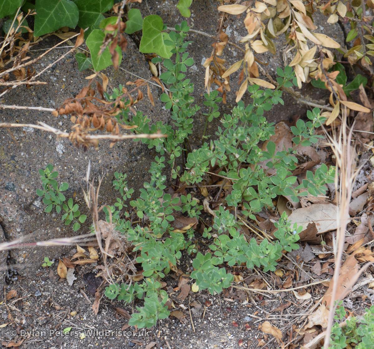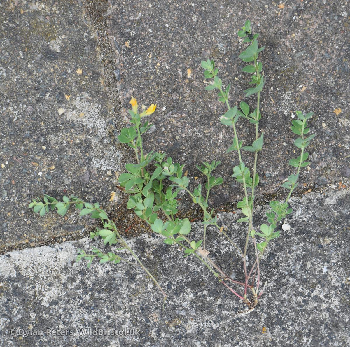 Hairy annual with procumbent to decumbent stems to 30(80)cm; leaflets narrowly ovate to obovate; flowers (1)2-4, 5-10mm, yellow; 2n=24. Native; dry grassy places near sea; very local in South West England East to West Sussex, Pembrokeshire, South West & South East Ireland, Channel Islands.