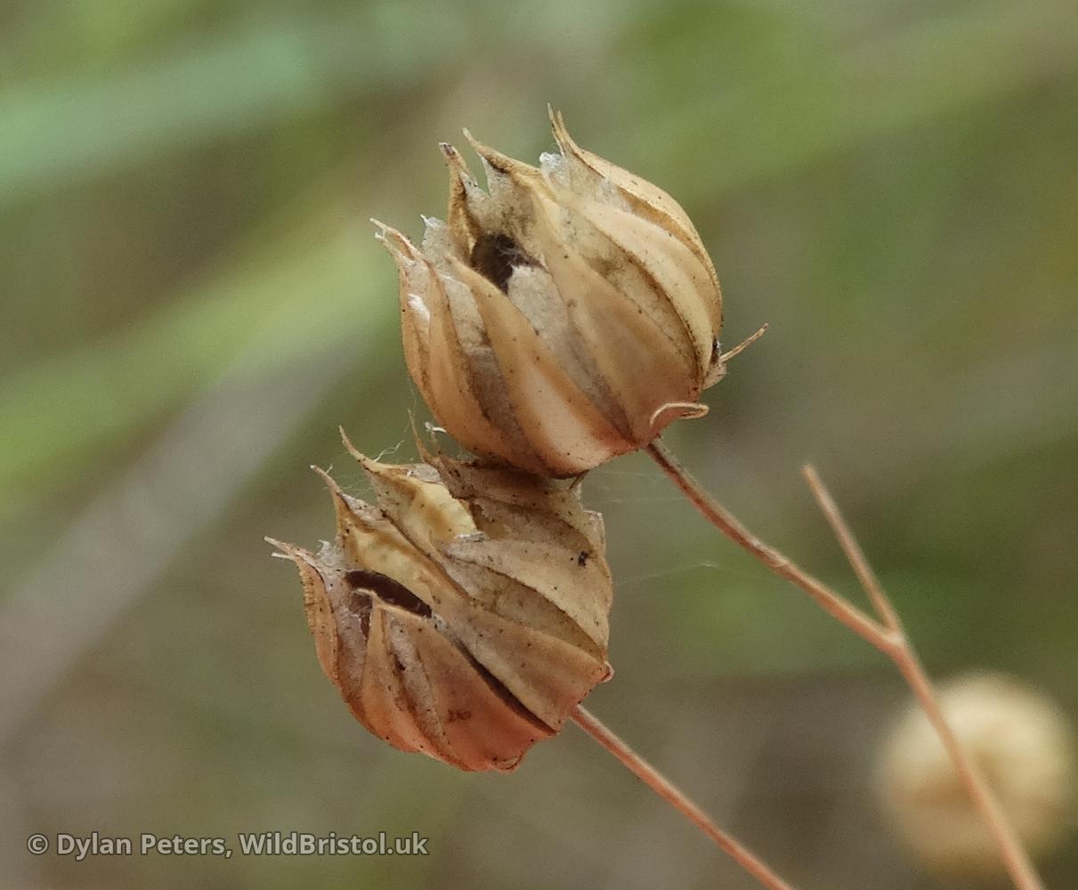Widespread but local in the South Western parts of the UK around coasts. Elsewhere it is scattered and scarce. Habitat includes: Dry, grassy places with infertile, drought-prone soil sited in warm, sheltered, South facing slopes such as grassland-scrub mosaics, coasts, cliff-slopes, coombes, path sides, field margins, roadside verges, railway banks, old quarries etc. Growing habit: Annual / Biennial / Short-lived Perennial. Flowers: June to September. Height: Up to 60 cm. Other names include: Narrowleaf Flax.