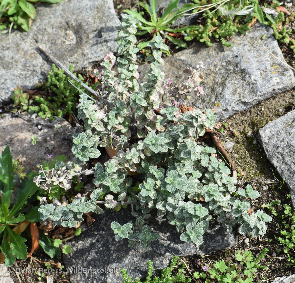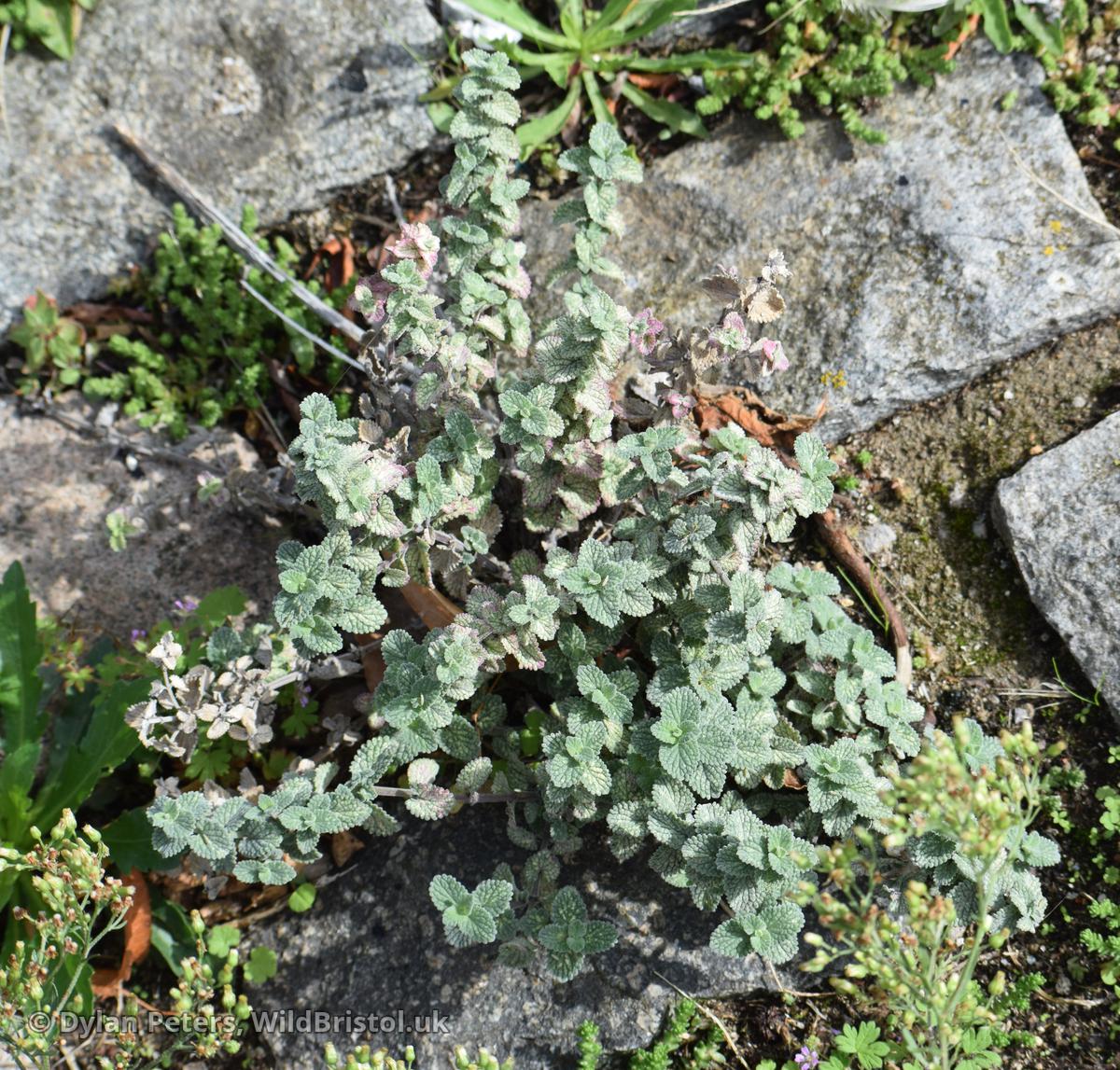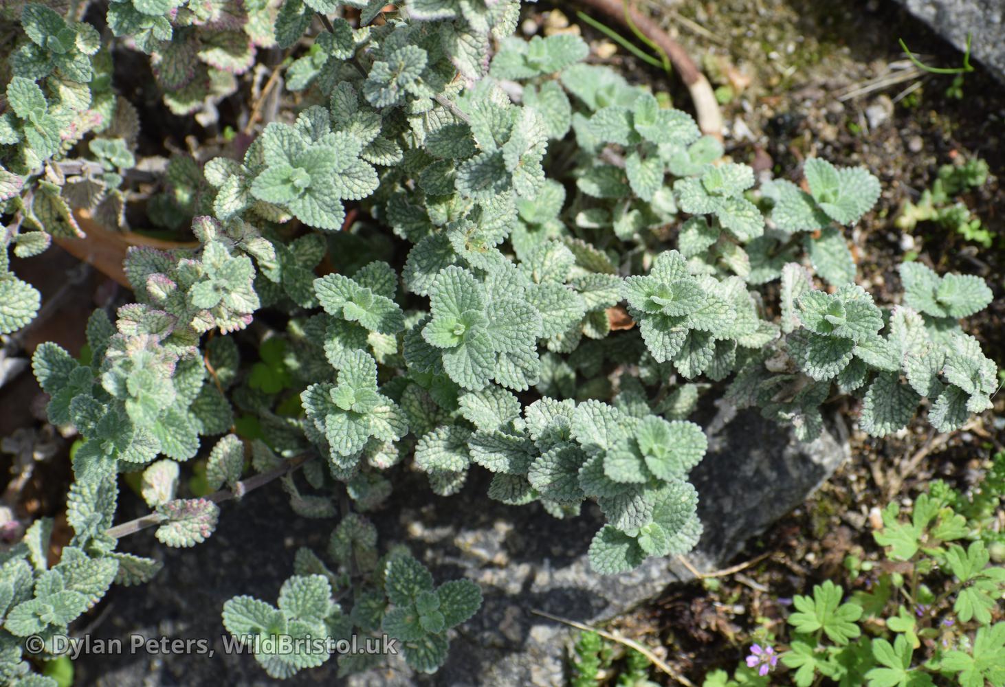 Similar to N. x faassenii, but stems shorter and more usually decumbent; inflorescences shorter; and stamens exserted; leaves cordate at base, length/breadth ratio nearer 3:2 than 3:1; (2n=18). Neophyte-survivor; grown and persistent in wild as for N. x faassenii, scattered in England; Caucasus and Iran. Fertile.