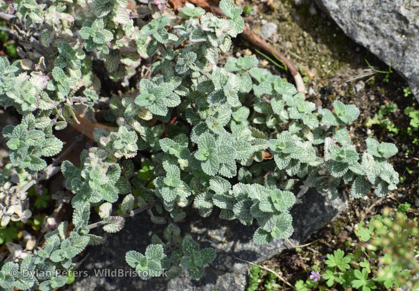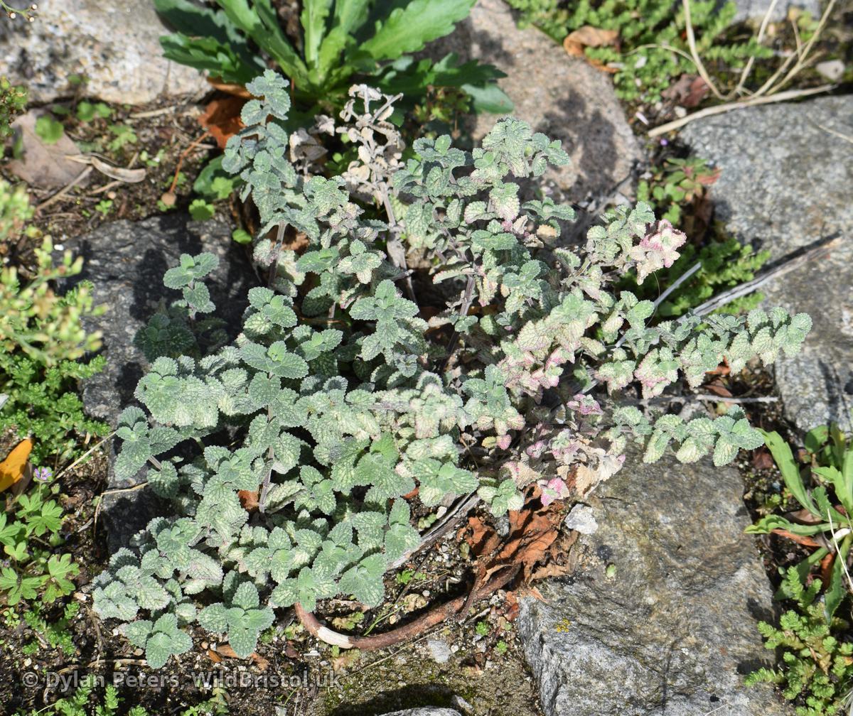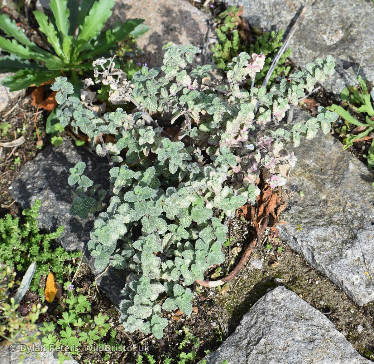 Similar to N. x faassenii, but stems shorter and more usually decumbent; inflorescences shorter; and stamens exserted; leaves cordate at base, length/breadth ratio nearer 3:2 than 3:1; (2n=18). Neophyte-survivor; grown and persistent in wild as for N. x faassenii, scattered in England; Caucasus and Iran. Fertile.