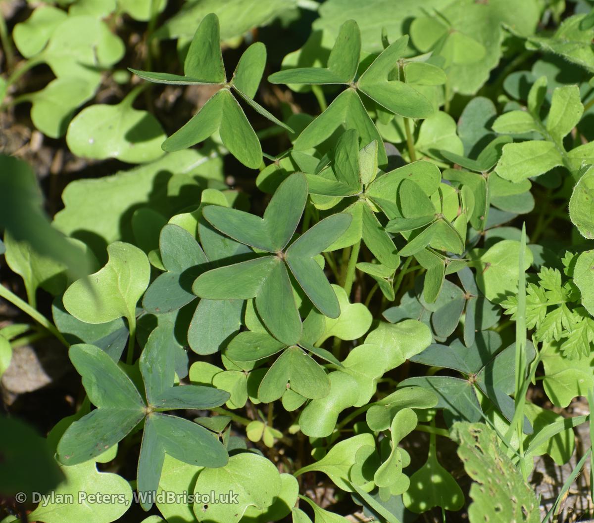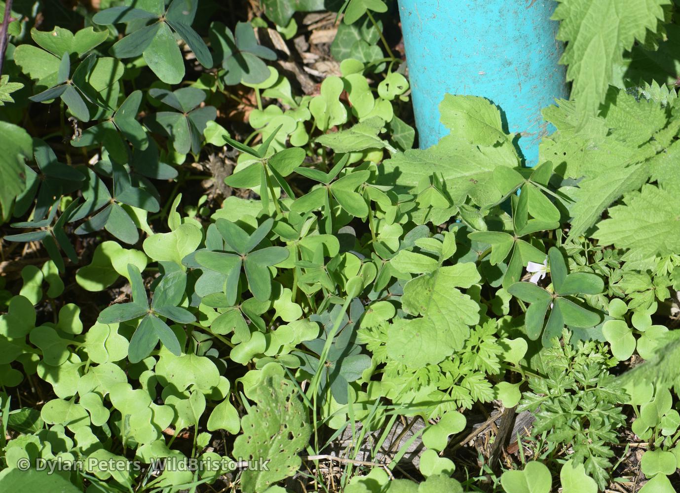 Differs from O. debilis in bulblets often formed at end of rhizomes to 3cm; leaflets with variously rounded to more or less pointed lobes, with obtuse to rounded sinus, without warts; flowers pink, sometimes white, 8-13mm; (2n=14, 24). Neophyte-naturalised; weed of gardens and other open ground, reproducing by bulblets only; frequent in South England and Channel Islands, scattered elsewhere in British Isles North to Berwickshire; Central & South America. Variable in leaf-shape; the commonest plants have 'fishtail-shaped' (obsagittate) leaflets with elongated lobes rounded at ends and rounded to obtuse sinus; some plants from Devon, Cornwall and Guernsey have much more rounded leaflet-lobes with obtuse sinus; plants known as O. vespertilionis (very rare in Britain) have 'V-shaped leaflets' with very elongated lobes often subacute at extreme ends and rounded sinus.