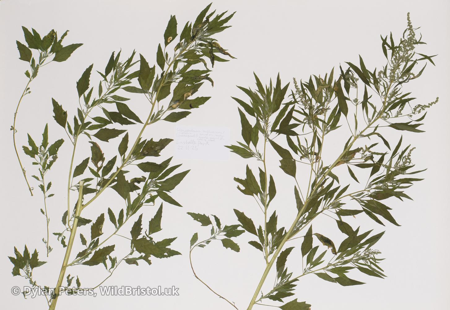 Rare casual; coming in with soya waste and top soil on newly made ground. It grows to produce a large bushy mass. Other names include: Bush's Goosefoot.