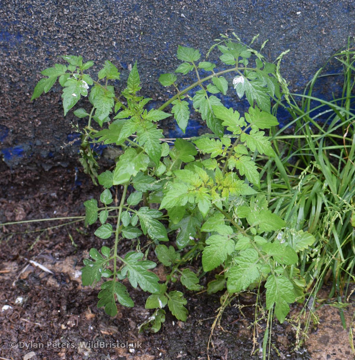 Stems erect to decumbent or scrambling, to 2m; leaves pinnate, 20-40cm, with toothed to lobed leaflets; corolla yellow, 18-25mm across; fruit usually red, rarely yellow to orange, 2-10cm across; (2n=24). Neophyte-casual; much used as salad-fruit and vegetable and common on tips and in sewage works and waste places, grown on field scale in South England and Channel Islands; frequent throughout British Isles; Central & South America.